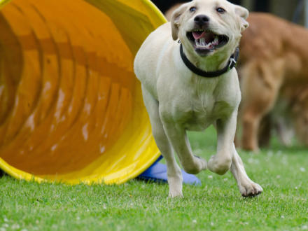 marking for time and accuracy. Dogs run off leash